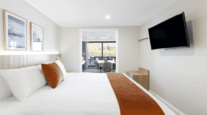 • 2 Bedroom Lake View Apartment – 1 x Extra Large Double & 2 x Single Beds (4 Person Sharing)