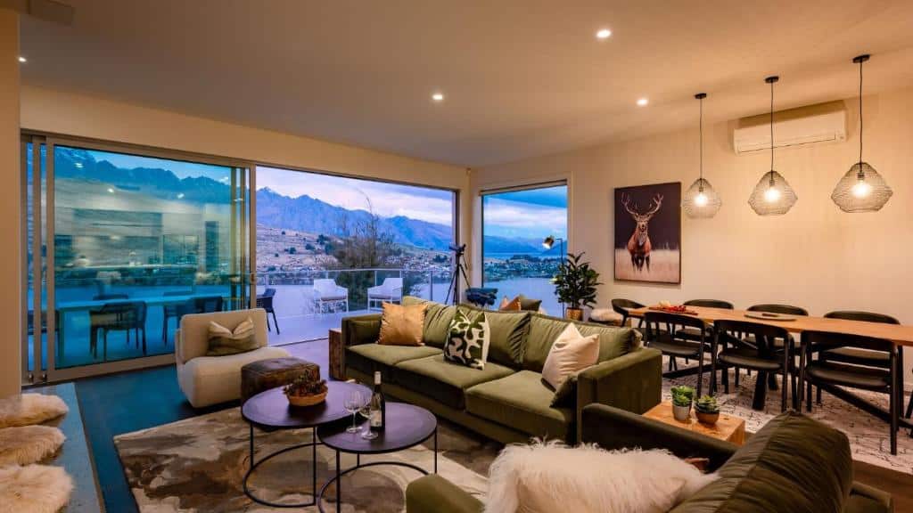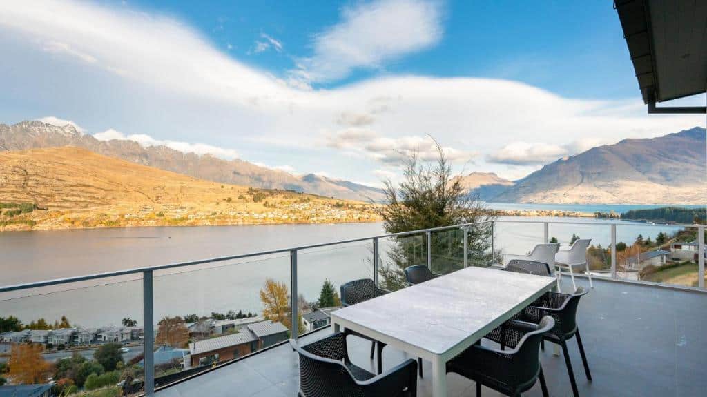 This spacious holiday home with four bedrooms and four bathrooms. Guests enjoy a private entrance and a fully equipped kitchen with modern appliances. The property features a beautiful garden, a patio, and a hot tub. Free WiFi is available throughout the home, ensuring connectivity for all guests. The holiday home includes air-conditioning, a fireplace, and a washing machine. The villa is situated in between Frankton and Queenstown with great views of Lake Wakatipu.